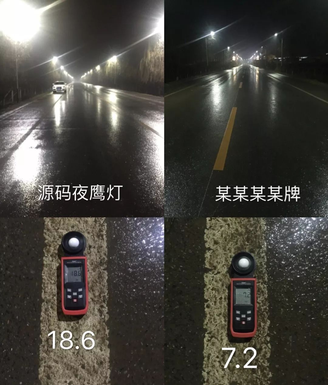同一道路不同標(biāo)段下源碼夜鷹燈與某牌太陽能路燈對比