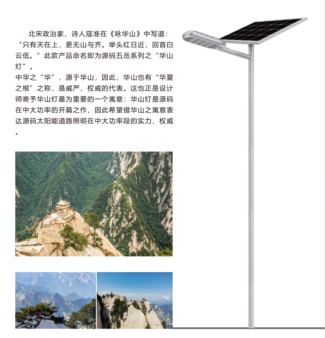 華山燈屬于高性價比的大功率分體式太陽能路燈,被廣泛應(yīng)用于城市或鄉(xiāng)鎮(zhèn)主干道或次干道,以及高速路、工業(yè)園區(qū)、廣場等場景。
